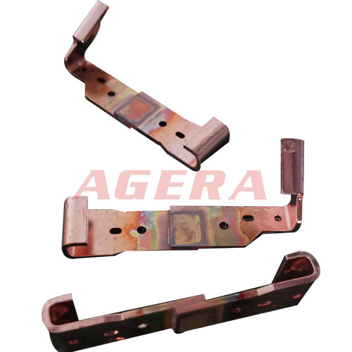此产品为黄铜银点钎焊产品,采用点点手机版下载安装最新版苹果12自动化中频直流逆变点焊机焊接,下电极做好焊接夹具,一次可以装夹多个焊接产品,IGBT控制系统将电源频率升至1000HZ,时间ms级控制,次级直流输出,阻抗小,热量集中,焊接强度高,变形小,效率高,顶推试验达到客户使用要求。以下是焊接此产品的焊机,要了解焊机详情介绍,请点击以下产品图片。